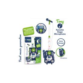 Microfono wireless con altoparlante con effetto eco. Regolazione volume. Tasti di selezione brano precedente/ ...