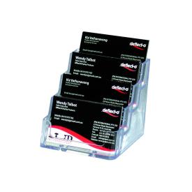 Portadepliant a6 verticale con base a L, colore trasparente. Formato: A6. Dimensioni: 10,8x4,5x15 cm.