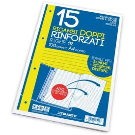 Ricambi Blasetti in carta bianca usomano da 80 g/mq con 4 fori rinforzati con banda trasparente in plastica. I...