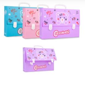 Valigetta polionda colore neutro 27x38 D/5 CON MANICI E CHIUSURE COLORATI, VERDE, ROSSO,GIALLO, BLU.