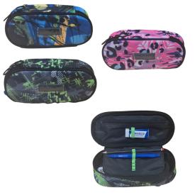 Astuccio per la scuola Seven Round Plus. Realizzato in robusto poliestere, con chiusura zip e doppio vano inte...